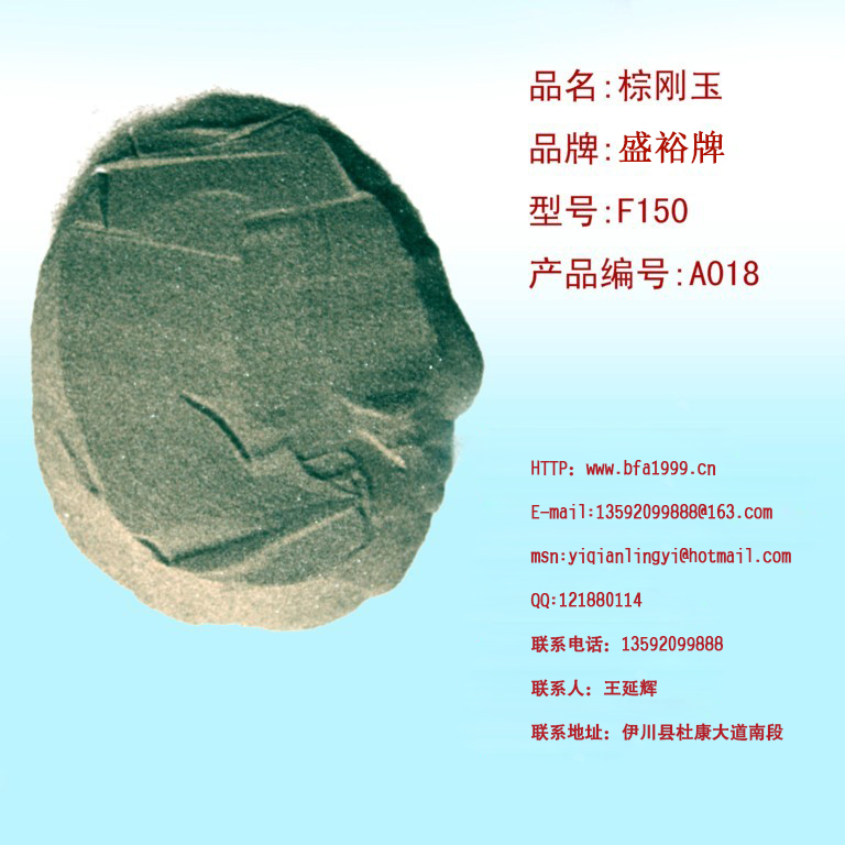 棕剛玉F150是我公司是專(zhuān)業(yè)生產(chǎn)棕剛玉的廠(chǎng)家,生產(chǎn)棕剛玉始于1999年,工廠(chǎng)在河南省洛陽(yáng)市伊川縣伊川縣杜康大道南段水廠(chǎng)南500米,我公司的產(chǎn)品全部是一級品。