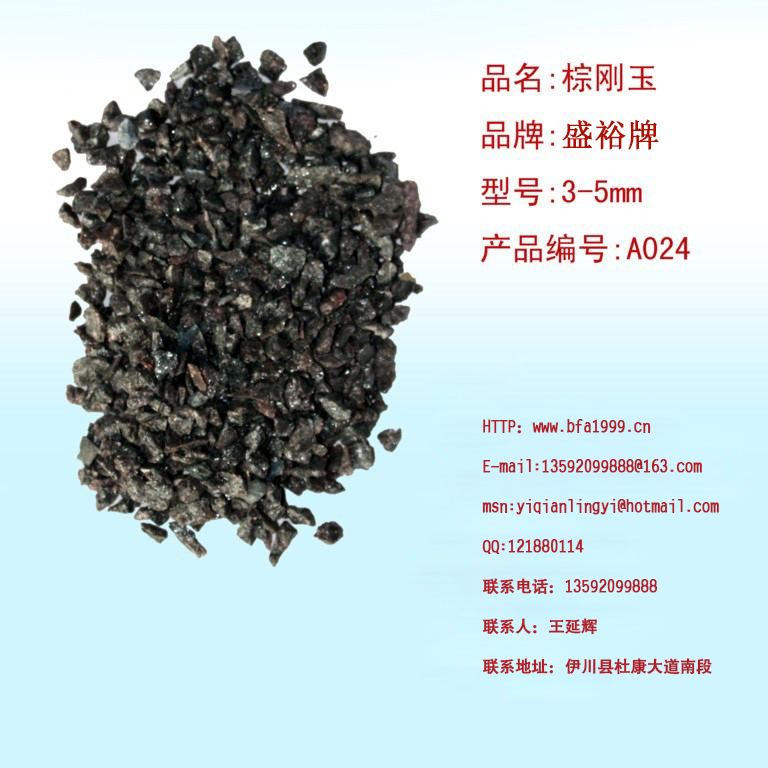 棕剛玉3-5MM是我公司是專(zhuān)業(yè)生產(chǎn)棕剛玉的廠(chǎng)家,生產(chǎn)棕剛玉始于1999年,工廠(chǎng)在河南省洛陽(yáng)市伊川縣伊川縣杜康大道南段水廠(chǎng)南500米,我公司的產(chǎn)品全部是一級品。