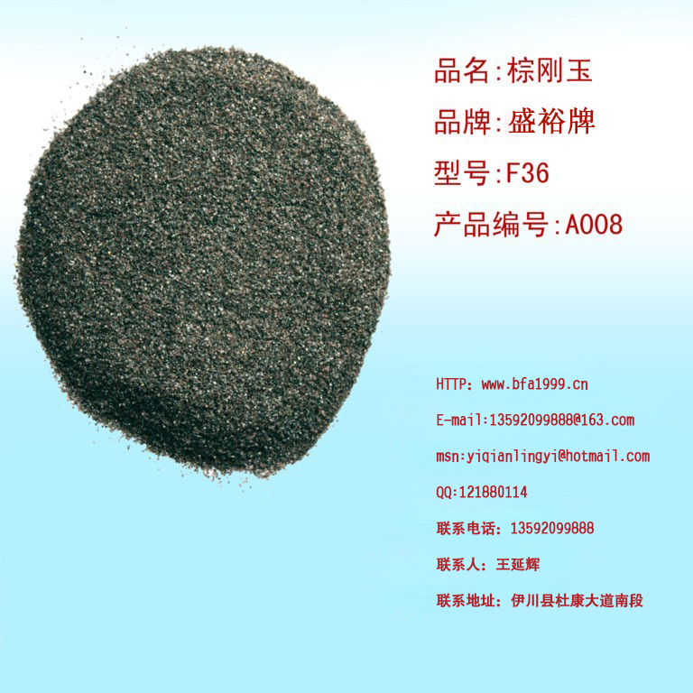 棕剛玉F36是我公司是專(zhuān)業(yè)生產(chǎn)棕剛玉的廠(chǎng)家,生產(chǎn)棕剛玉始于1999年,工廠(chǎng)在河南省洛陽(yáng)市伊川縣伊川縣杜康大道南段水廠(chǎng)南500米,我公司的產(chǎn)品全部是一級品。